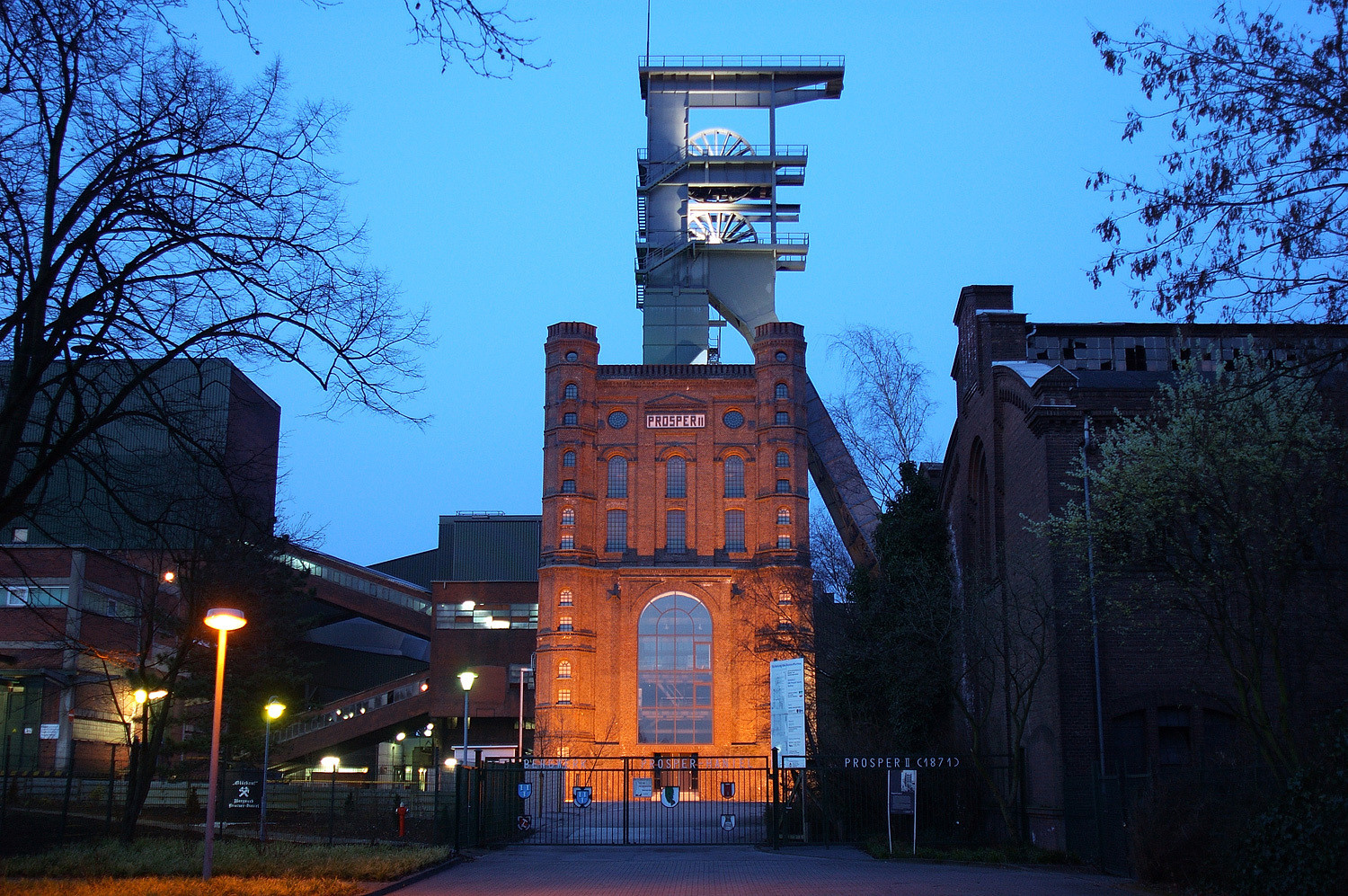 Besteige den etwa 40 Meter hohen Malakoffturm und genieße den Ausblick von der Aussichtsplattform über die Umgebung. Der Turm der Zeche Prosper II gehört zu den aufwändigsten Schachttürmen des späten 19. Jahrhunderts und beeindruckt durch seinen außergewöhnlichen Materialmix aus dunkelrotem Ziegelbackstein und grauem Stahl. Bei Führungen der Stiftung Industriedenkmalpflege und Geschichtskultur kannst du mehr über die lange Geschichte der Zeche erfahren und sehen, warum das Stahl-Fördergerüst nachträglich eingebaut wurde.